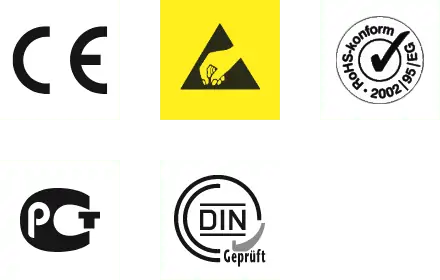 Además de los rigurosos procedimientos de nuestro propio centro de pruebas, la seguridad de nuestros productos está avalada por pruebas realizadas por laboratorios externos. Esto abarca desde las etiquetas CE y ESD hasta la clase de protección de los dispositivos y el uso de materiales conformes con RoSH.