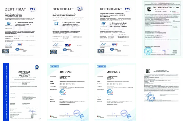 S+S no deja nada al azar cuando se trata de calidad. Para garantizarla, recibimos periódicamente certificaciones de centros de pruebas externos e independientes. Nuestra gestión de calidad cumple las normas DIN EN ISO 9001:2015 y DIN EN ISO 14001:2015, y nuestros productos también cumplen las normas rusas de calidad y seguridad (GOST) y los reglamentos de la Unión Económica Euroasiática (EAC).