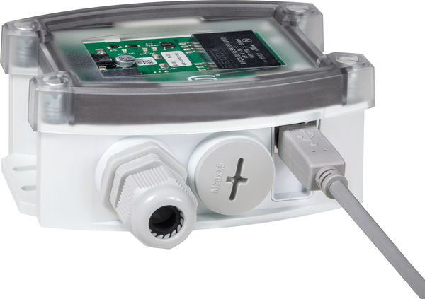 El adaptador de comunicación sirve de enlace entre un sensor S+S Modbus y un PC (Windows). La conexión del sistema, rápida y sin complicaciones, se realiza a través de un puerto USB estándar; no es necesaria ninguna fuente de alimentación adicional.