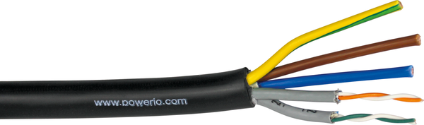 - Cable híbrido para conectar las cajas powerIO® Alimentación: 3x 2,50 mm² Datos: 2x (2x 0,34 mm²), blindados Venta por metros, cantidad mínima de pedido 10 m / 33 pies