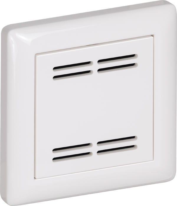 Sensor de calidad del aire sin mantenimiento AERASGARD FSLQ con salida activa, calibración automática, en carcasa empotrada, para determinar la calidad del aire (0...100 % COV). El transductor de medición convierte las magnitudes medidas en una señal normalizada de 0 -10 V. El sensor empotrado se instala en programas de interruptores de superficie de alta calidad, preferentemente de Gira, Berker, Merten, Jung, Siemens o Busch-Jaeger (mediante un adaptador empotrado), ya sea individualmente o en combinación con interruptores de luz, enchufes, etc.