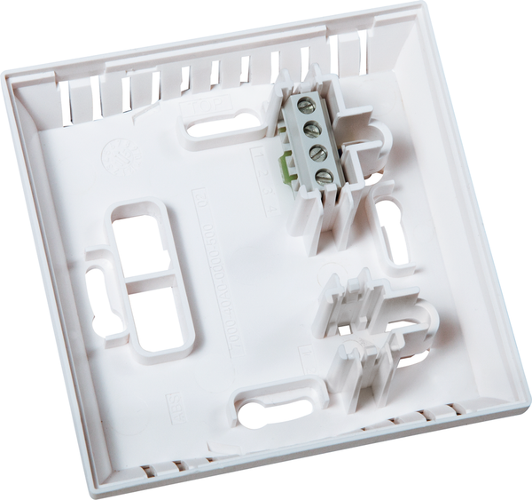 Sensor de temperatura ambiente THERMASGARD RTF 1 con salida pasiva, en una atractiva carcasa de plástico con tapa a presión, parte inferior con fijación de 4 orificios, para montaje en cajas empotradas instaladas vertical u horizontalmente, con punto de rotura predeterminado para conexión en superficie, o con robusta carcasa de acero inoxidable (parte superior e inferior de acero inoxidable, tapa a rosca) para aplicaciones a prueba de vandalismo, por ejemplo, en escuelas, cuarteles y edificios públicos. El sensor de temperatura ambiente se utiliza para registrar/visualizar la temperatura en habitaciones cerradas y secas, en pisos, cines, supermercados, almacenes, oficinas y locales comerciales.