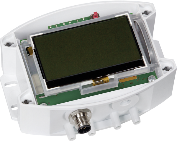 Calibratable dual pressure sensors/dual differential pressure transducers and volume flow transducers PREMASGARD® 722x (series) with 2 x 8 switchable measuring ranges, 2 automatic output signals (32 devices in one), housing with pressure connection spigot made of impact-resistant plastic, optionally with/without display, with cable gland or M12 plug connector in accordance with DIN EN 61076-2-101 for measuring positive, negative or differential air pressures. The pressure transmitters automatically detect the required output type and convert the measured variables into the required standard signal of 0-10 V or 4...20 mA (Automatic Output Switching). We have patented this unique technology.