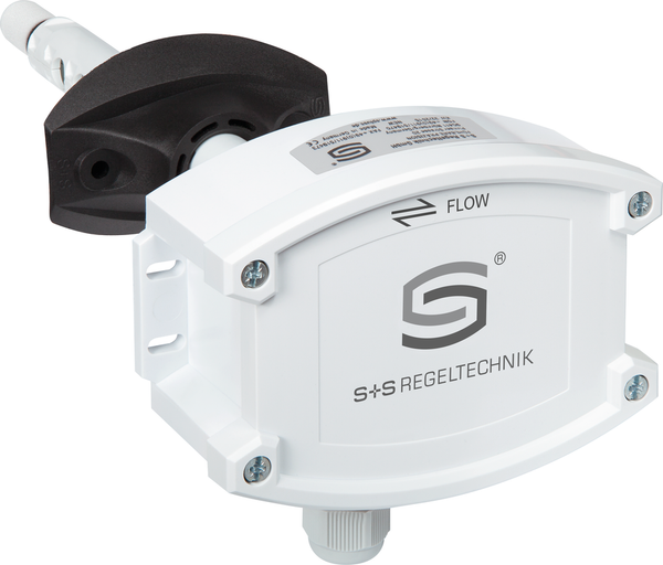 Maintenance-free duct sensor AERASGARD® KTM - CO2 - SD with active output, automatic calibration (fixed setting), in an impact-resistant plastic housing with quick-locking screws, for determining the CO2 content of the air (0...2000 ppm / 0...5000 ppm) and the temperature (-35...+80 °C). The measuring transducer converts the measured variables into a standard signal of 0-10 V.