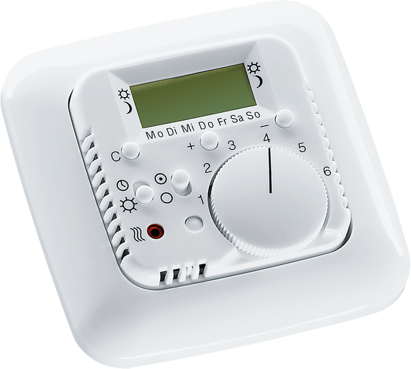 Electronic individual room controller/clock thermostat THERMASREG® RTR - E - UP with weekly program, internal sensor or with remote sensor 4 m for flush mounting.