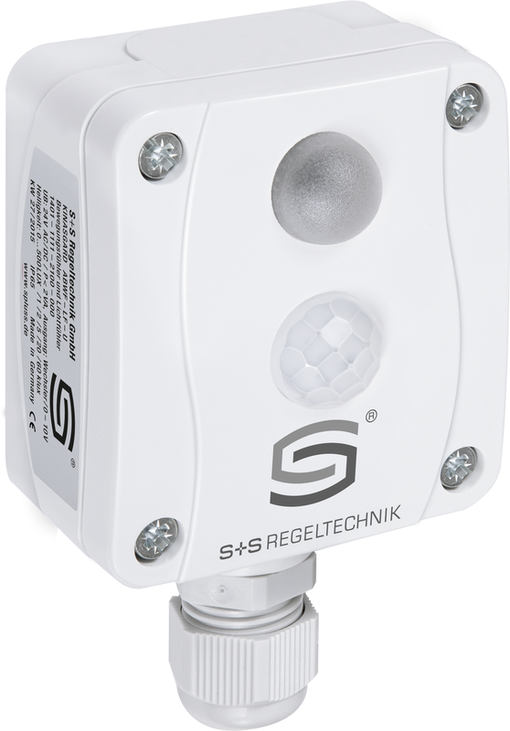 The presence detector, motion and light sensor KINASGARD® / PHOTASGARD® ABWF/LF is a combination device and detects movement, illuminance and the presence of people and is used to detect statuses. The measuring transducer supplies a standard signal of 0-10 V or 4...20 mA for brightness and has a switching contact as an output for movement.