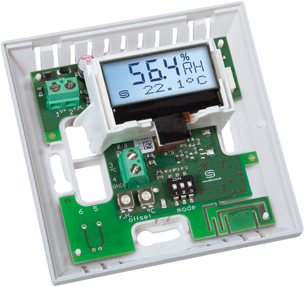 The transmitter is used in non-aggressive, dust-free environments, in refrigeration, air conditioning and clean room technology, in indoor and residential rooms, offices, hotels, technical rooms, assembly and conference facilities. It is designed for the precise measurement of temperature and humidity. A digital, long-term stable sensor is used as the measuring element for humidity and temperature. Fine adjustment by the user is possible.