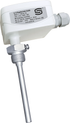 Calibratable temperature transmitter THERMASGARD® TM 43 with eight switchable measuring ranges, continuous linear output, straight protection tube, housing made of impact-resistant plastic with snap-on cover.