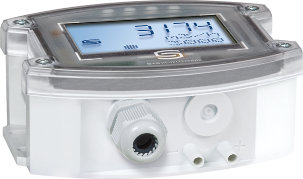 The pressure sensor is used in clean room, medical and filter technology, in ventilation and air conditioning ducts, in spray booths, in commercial kitchens, for filter monitoring and level measurement or for controlling frequency converters. The measuring medium is air (non-condensing) or gaseous, non-flammable media.